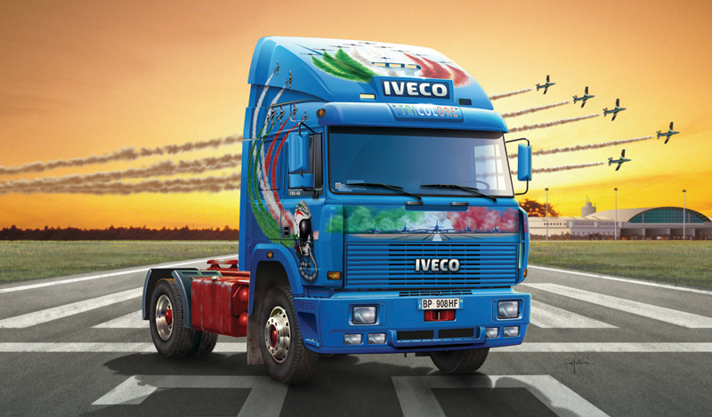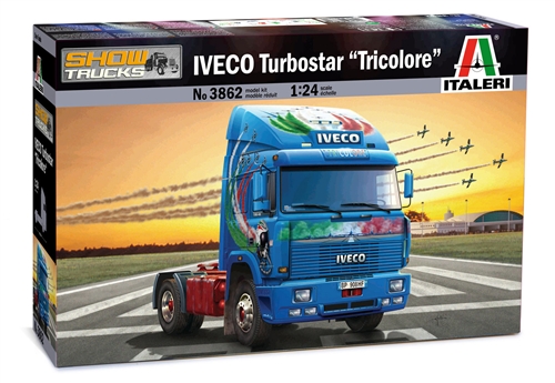 This truck is the first of the new series "SHOW TRUCKS" fully dedicated to trucks 1/24 scale characterized by exclusive liveries and colors which are unique and with a strong visual and emotional impact. These trucks are not only road transport vehicles, but real works of art in transit. The Turbo-Star, the flagship of the Iveco truck series was overhauled towards the end of the Eighties. Some changes were made to the engine and the aerodynamic features of its spoiler were improved. The new Turbo-Star also has better cooling of its front wheel rims. This truck is the No. 1 of all Italian trucks. Due to its ruggedness and its reliable engine it archieved an important position on the European truck market in the Eighties. Italeri offers this model with a very attractive color, as usual in the “Show Trucks” meetings.