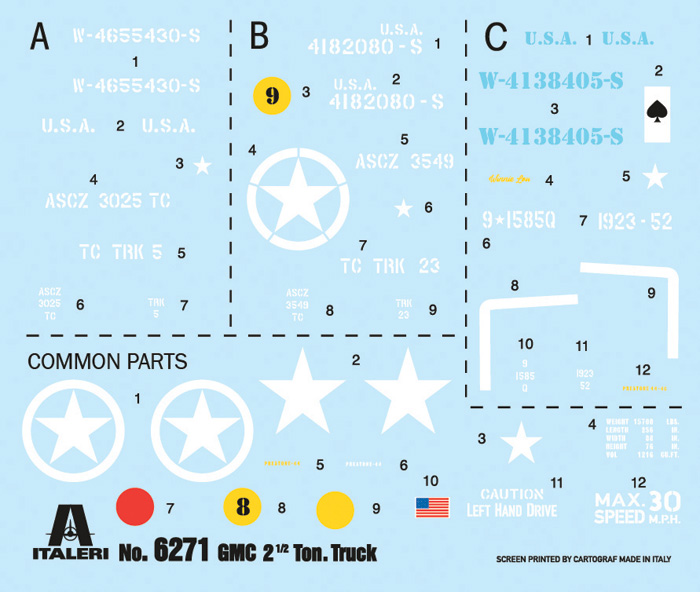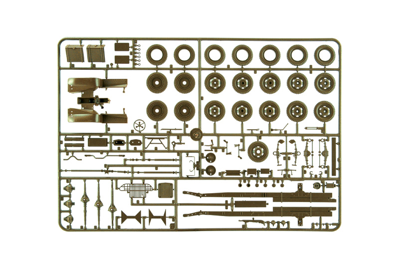 The GMC 2 ½ ton truck was built in an exceptionally high number of units and can be considered the backbone of the logistical operations of the U.S. Army during World War II. Characterized by a very robust and reliable structure, its strength lay in its excellent off-road performance, thanks to its six-wheel drive and effective suspension design. It was produced in numerous variations, including the more common "cargo" versions with open or closed cabins, "long wheelbase," and "short wheelbase." Additionally, various configurations, some developed directly in the field, were tailored for more specific and precise purposes. Its role was crucial in meeting the demanding logistical needs following the initial stages of the Normandy landings, involving the transportation and handling of substantial quantities of troops and materials.