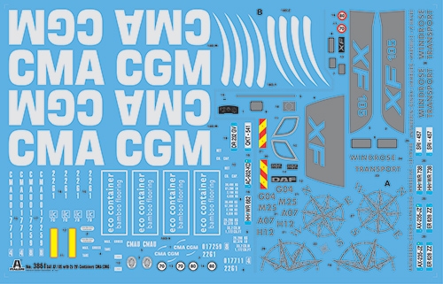The DAF XF 105 Space Cab is a modern road haulage tractor offering a high handling ability and a good standard of comfort on long-haul routes. It also features an excellent reliability and outstanding engine performances under a wide range of conditions, in full compliance with the latest environmental standards. To dispatch the sea containers to their final destination, they are loaded on special semi-trailers. This model features a DAF XF 105 Space Cab tractor and a long semi-trailer loaded with two 20’ containers of the French shipping line CMA-CGM.