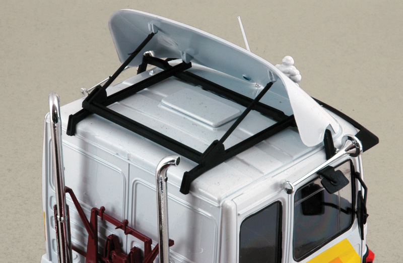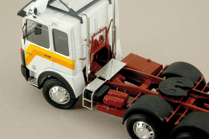 MAN is one of the most famous and well-known manufacturers of heavy industrial and commercial vehicles in Europe. Throughout its long industrial history it has introduced many technological innovations which have become benchmarks within the heavy transport vehicle sector. The MAN 26.321 was fitted with the 6-cylinder “Formula 6” diesel engine which, at the time, was a forerunner of the adoption of advanced technology capable of optimizing power and minimizing consumption. Even the cab design was studied and developed in order to satisfy the requirements of modern truck drivers who were becoming more aware and attentive to on-board comfort and vehicle ease of use. Equally, design changes also incorporated aesthetic features such as large horns, aerodynamic appendages and the characteristic spoiler on the roof of the cab. In this version the frame was strengthened to allow the adoption and fitting of four rear wheels.