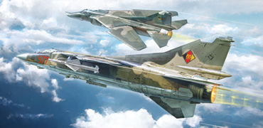 The variable-sweep fighter-bomber Mikoyan-Gurevich Mig-27 (NATO designation Flogger D), was developed by the Soviet aviation industry .