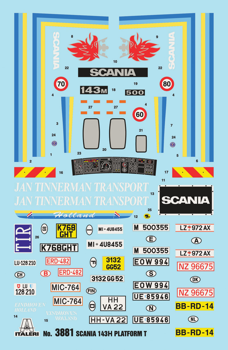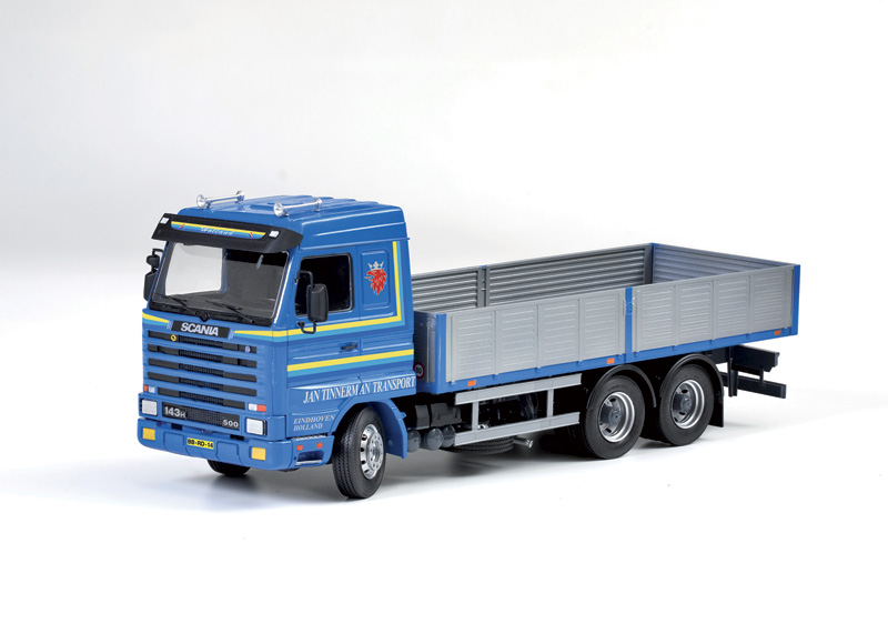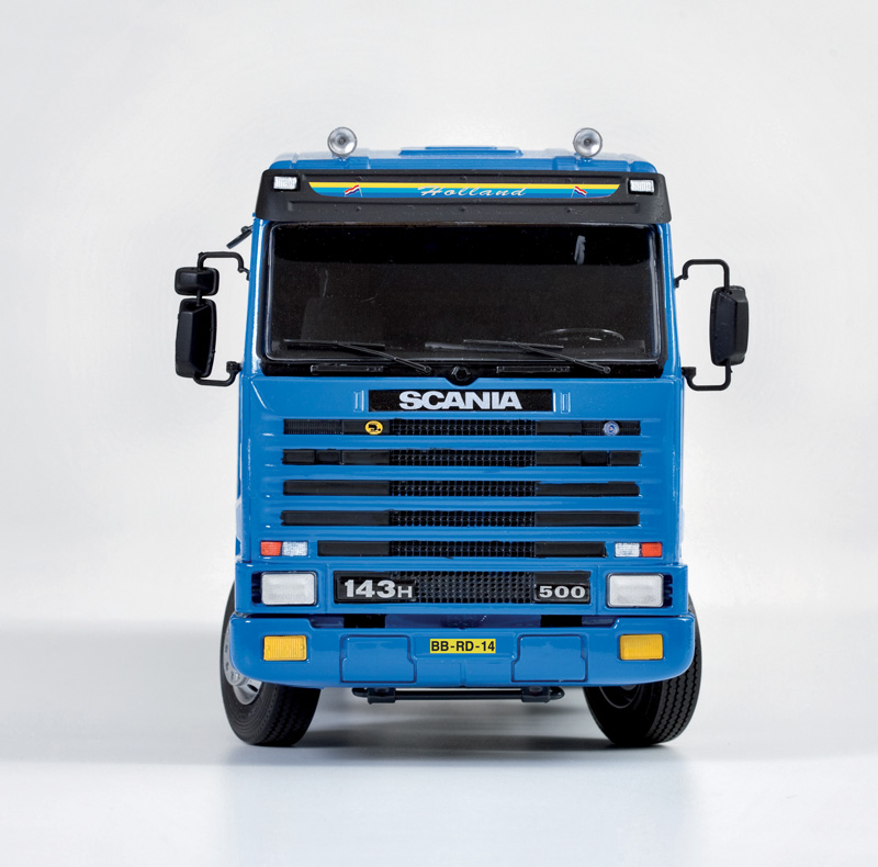 The Scania R143H 6x2 was a strong, reliable truck which has been used for hauling heavy loads over long distances. The V8 engine has been Europe’s strongest and most reliable truckengine, which makes high speeds possible at a low fuel consumption. The R-type cab with its rounded edges and slanted windscreen has been developed in a windtunnel. It also meeted the most stringent safety regulations at those times. Scania trucks are being used in more than 60 countries all over the world, from Lapland to Australia.