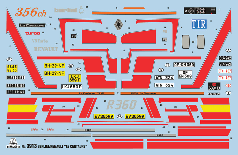 "Le Centaur" has been presented as single unit “show truck” at the Paris Motor Show in 1978. The starting development point was the well-known Berliet TR 350 equipped with a 15-liter V8 turbo engine, with a power of 356 hp. The truck has been made on Marcel Benoit inputs with the goal to present, during the Paris exhibition, something able to create enthusiasm and something different from the standard vehicles present on the market, at that time. “Le Centaur” project brings the name of two people : the French designer Lucien Moge and the Jean Pierre Augier, the developer of Lamberet truck body. After 15 days of no-stop working, in the Lamberet bodywork factory, “Le Centaur” was born. Le Centaur was launched on the market in two different versions : the 356 Hp and the “smaller” 305 Hp. On 1980, for effect of the line-up merge between Renault and Berliet, “Le Centaur” adopt the Renault brand and changed progressively the commercial name : Berliet TR 356 and Renault R360.