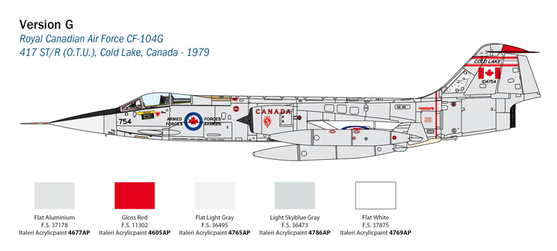 The Lockheed F-104 Starfighter is one of the most famous fighters in the history of aviation and also one with the longest operational life: its history began at the end of the 50s and ended, for some air forces, in mid 2000s. Its unique airframe, with slender fuselage and very little wing surface, made this aircraft ideal as an interceptor. Thanks to the thrust of its General Electric J79-GE-11A afterburning turbojet engine, it could exceed Mach 2,2 with an excellent rate of climb. But it was not very manoeuvrable and difficult to pilot. The F-104G Starfighter was produced on license by several European aviation industries. From the mid-60s, it became the standard interceptor for many NATO countries including Italy, Germany, Holland, Greece, and Turkey. The armament was basically the same found on previous versions, with a 20mm Vulcan cannon and the option to fit under the wings air-to-air missiles, bombs, or additional fuel tanks to increase the airplane's range. With time, reconnaissance duties were added to the traditional interceptor service. The F-104G was therefore equipped with a dedicated “Orpheus” reconnaissance external pod that gave excellent operational results.