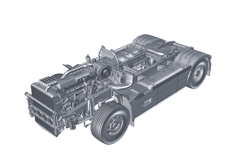 The Volvo FH is the highest expression, in terms of development and technology, of the famous commercial and industrial vehicles brand. Its modern and eye-catching design has been made to optimize aerodynamics, to minimize consumption and to ensure the highest standards of operational efficiency. The cabin has been developed to offer the highest active and passive safety standards. The vehicle is also equipped with modern driving assistance and risk prevention systems. There are several possibilities for customizing the vehicle in order to respond promptly and precisely to any kind of transportation needs. The Globetrotter XL cabin is the ideal solution to host two people and, thanks to the increased height it offered a better storage capability. The FH4 version is powered with the powerful 6 cylinders Euro 6 13 liters diesel engine. In 2014 Volvo FH4 won the “International Truck of the Year” award assigned by a pool of journalists of the most important European trucks magazines.