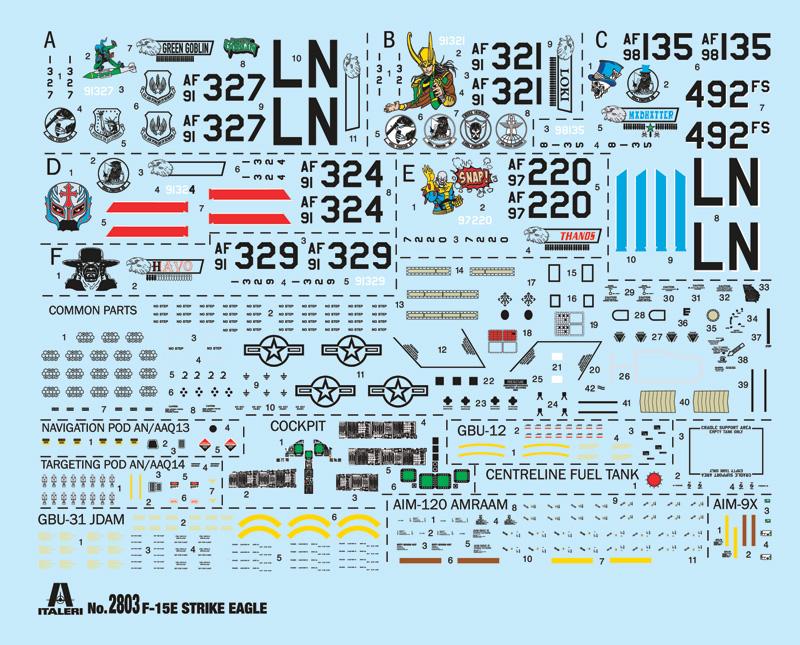 NEW PARTS - SUPER DECALS SHEET FOR 6 VERSIONS - COLOR INSTRUCTION SHEET
