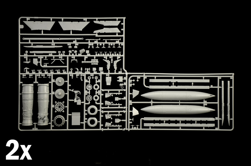 NEW PARTS - 350 parts - Photo-etched details - Removable RB199 engine with support trolley - Retracted or extended flaps and slats - Movable ailerons - Openable radome and fully detailed radars - Open or closed thrust reversers - Open or closed air brakes - Rubber tyres - Movable variable geometry wings and pylons - Rubber cover for wings entry point - Color instruction sheet - 2 Super decals sheet for 3 versions