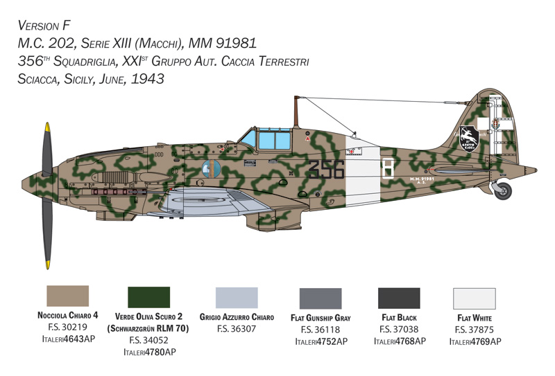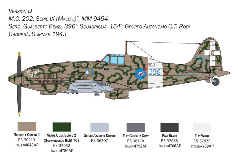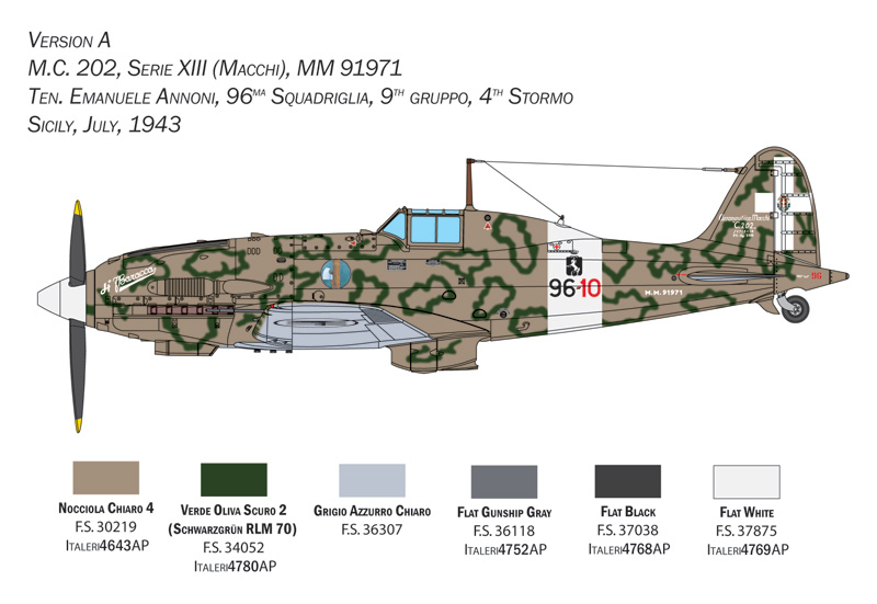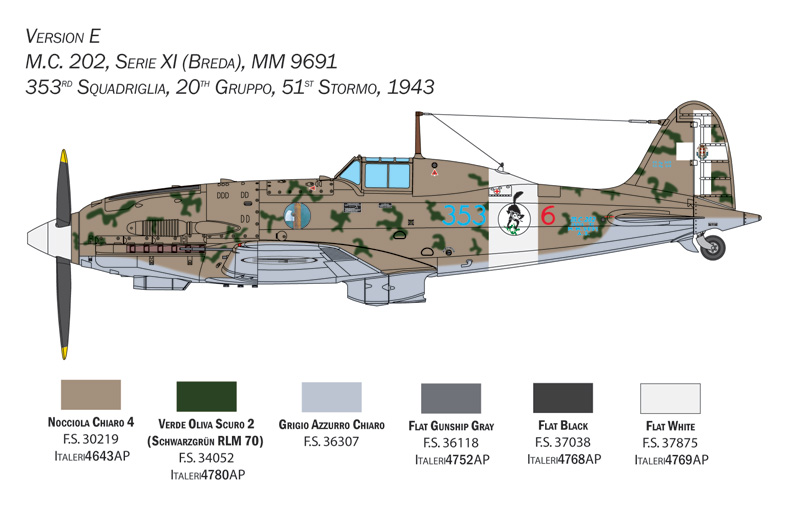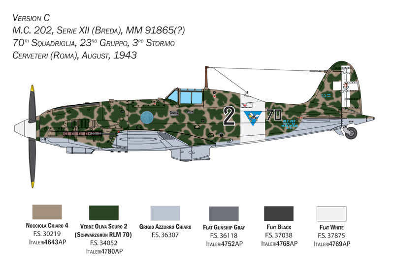 The introduction of the Macchi MC 202 Folgore was a significant development for the fighter squadrons of the Italian Regia Aeronautica. Stylishly designed from an aerodynamical perspective, it was fitted with the powerful German DB 601 engine produced under license by the Italian aeronautical industry. The engine and overall aeronautical performance of the aircraft provided the Regia Aeronautica with a fighter capable of actively engaging Allied fighters. The flight performance compared to the previous generation of fighters equipped with radial engines, such as the Fiat G-50 and the Macchi Mc-200, was in fact much better. Manoeuvrable and fast (it was able to reach 600 km h), it was armed, in the early versions, with two 12.7 mm Breda-SAFAT machine guns installed in the nose. Only in later versions were the armaments improved with additional machine-guns installed in the wings.