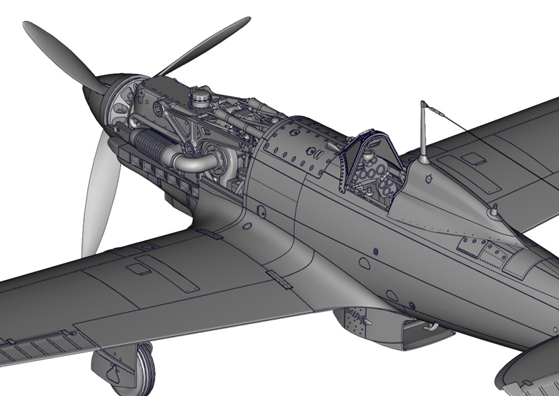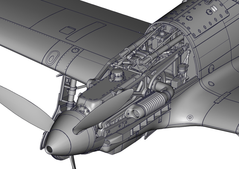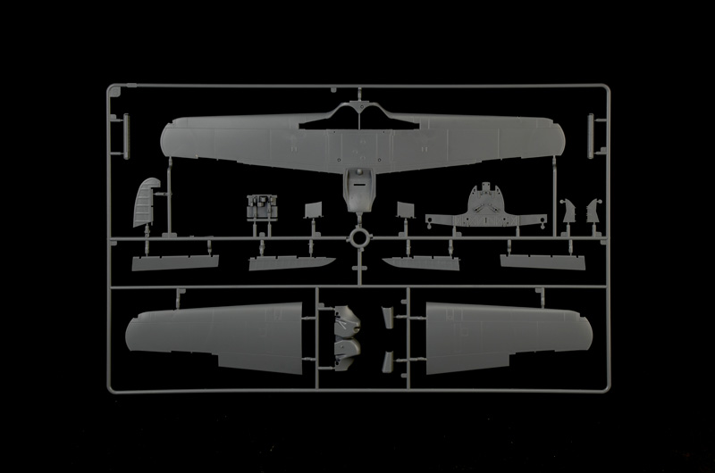 Super-detailed cockpit with 3D decals - Finely detailed engine and nose gun bay - Detailed landing gear with optionals wells covers - PE parts for engine, flaps, cockpit and overall detailing - Realistic panel lines and rivets - Moveable wings and tail ailerons - Open or closed flaps - Two types of tail ailerons - Super decals sheet for 8 versions - Realistic smoke rings decals with application guide - Colored painting and decals guide