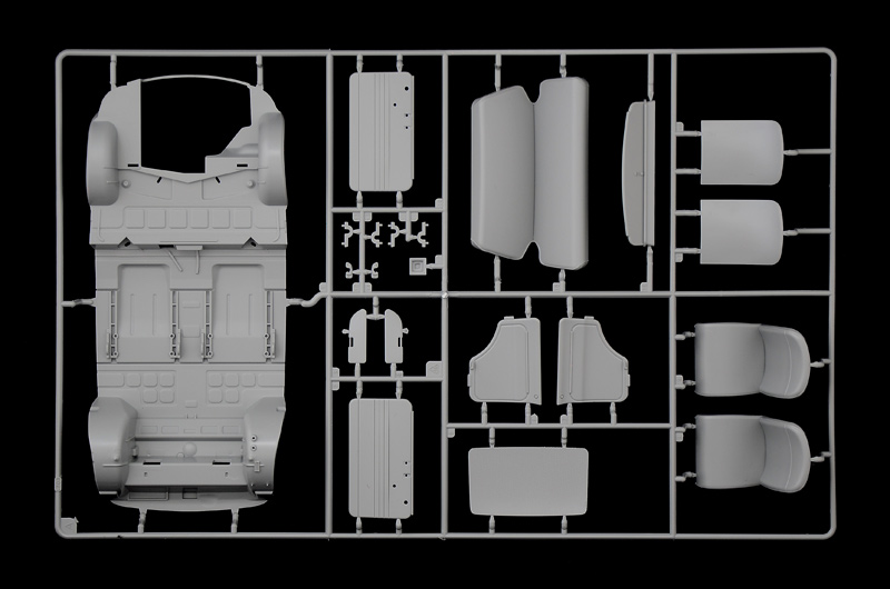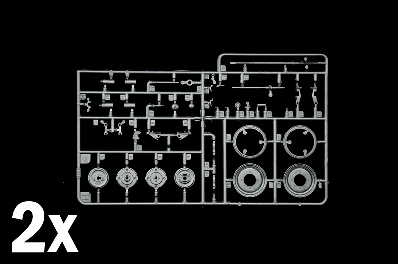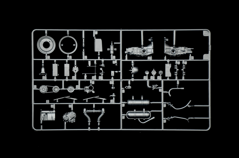 Upgraded moulds - Opening hood and trunk - Opened or closed top - Opening doors - Steering wheels - Working suspensions - Rubber tires - Photoetched and chromed parts