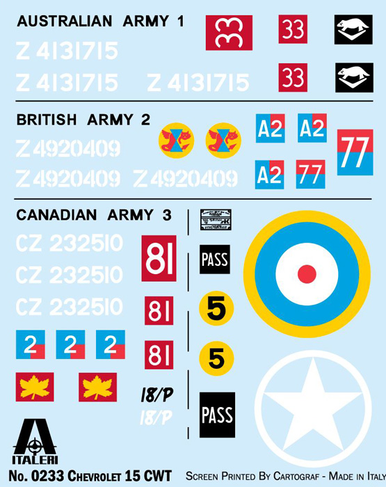 NEW DECALS SHEET FOR 3 VERSIONS - COLORS INSTRUCTION SHEET