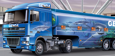 Questa moderna cisterna è realizzata in accordo alle più recenti norme di sicurezza per il trasporto dei liquidi infiammabili. Di sezione.