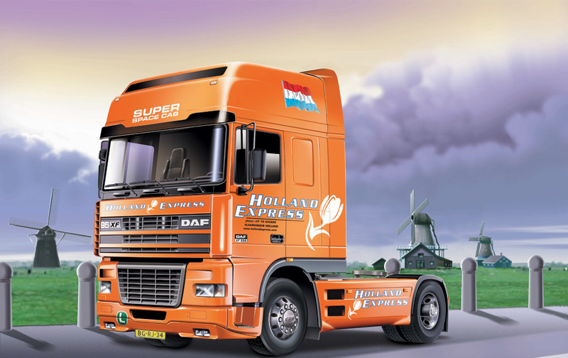 This modern road haulage tractor by DAF is a restyled version of the successful previous series. Offering excellent reliability and a good standard of comfort on long-haul routes, the XF 95 also features very good mechanical reliability and outstanding engine performance under a wide range of conditions, in full compliance with the strictest environmental standards. Also, in the event of an accident, the cab provides the driver with an extremely high level of protection.