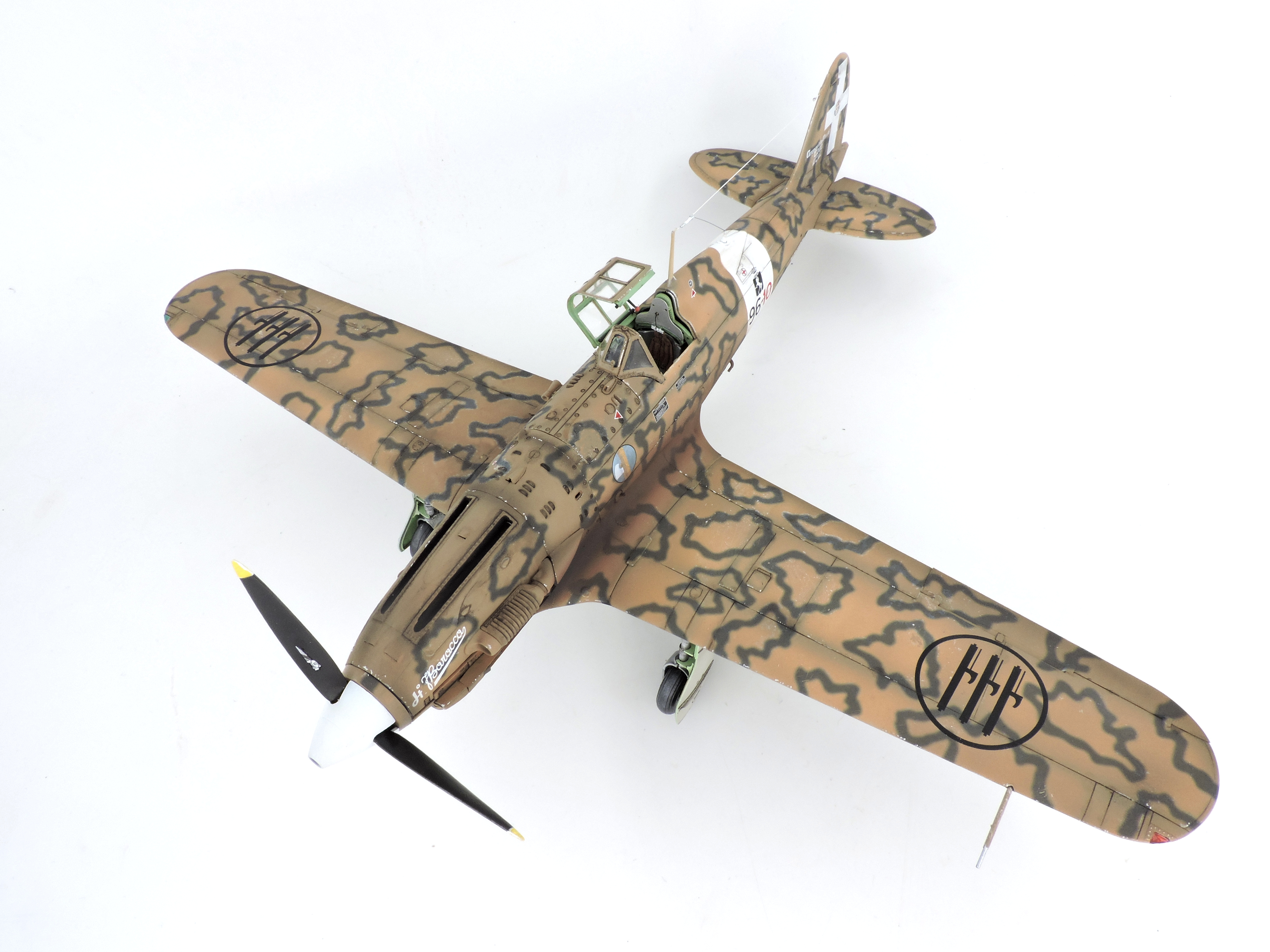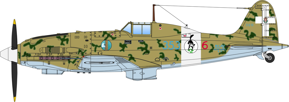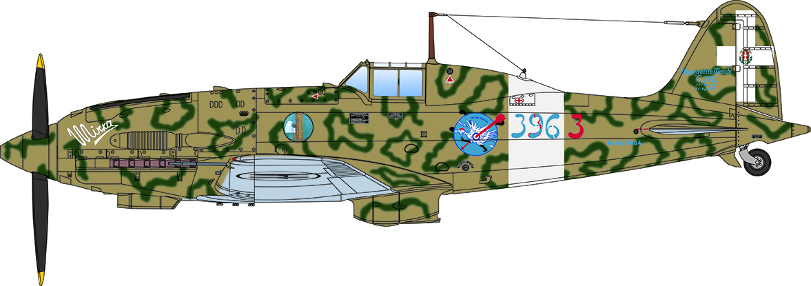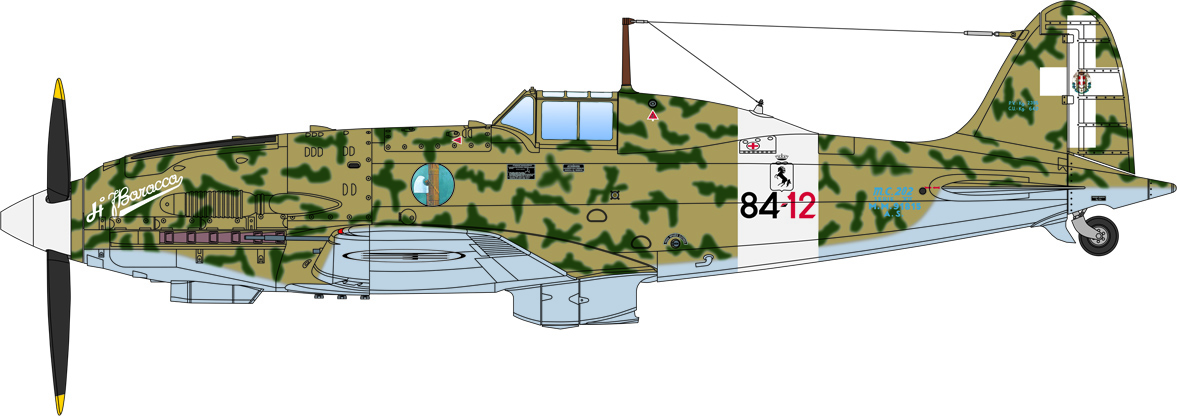 The introduction of the Macchi MC 202 Folgore was a significant development for the fighter squadrons of the Italian Regia Aeronautica. Stylishly designed from an aerodynamical perspective, it was fitted with the powerful German DB 601 engine produced under license by the Italian aeronautical industry. The engine and overall aeronautical performance of the aircraft provided the Regia Aeronautica with a fighter capable of actively engaging Allied fighters. The flight performance compared to the previous generation of fighters equipped with radial engines, such as the Fiat G-50 and the Macchi Mc-200, was in fact much better. Manoeuvrable and fast (it was able to reach 600 km h), it was armed, in the early versions, with two 12.7 mm Breda-SAFAT machine guns installed in the nose. Only in later versions were the armaments improved with additional machine-guns installed in the wings.
